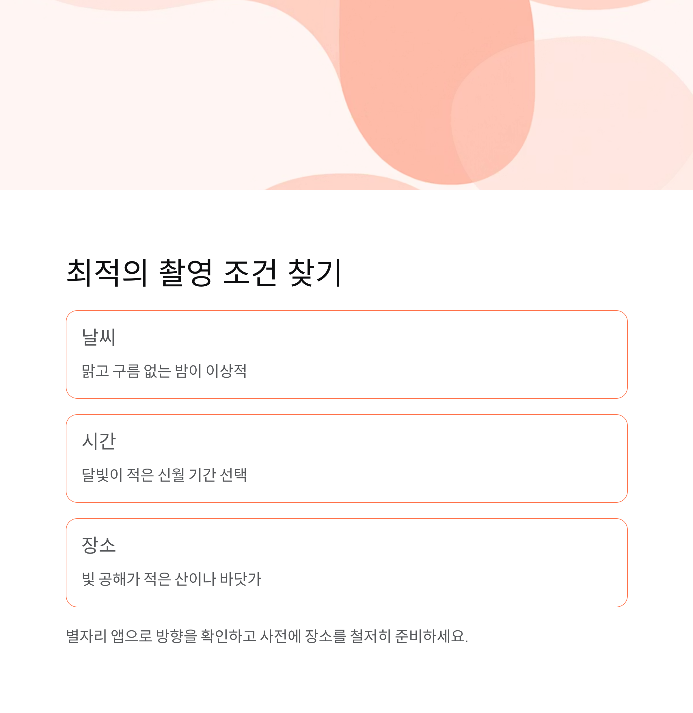 별 사진을 처음 찍는 분들을 위한 실전 중심의 조언을 담고 있습니다.