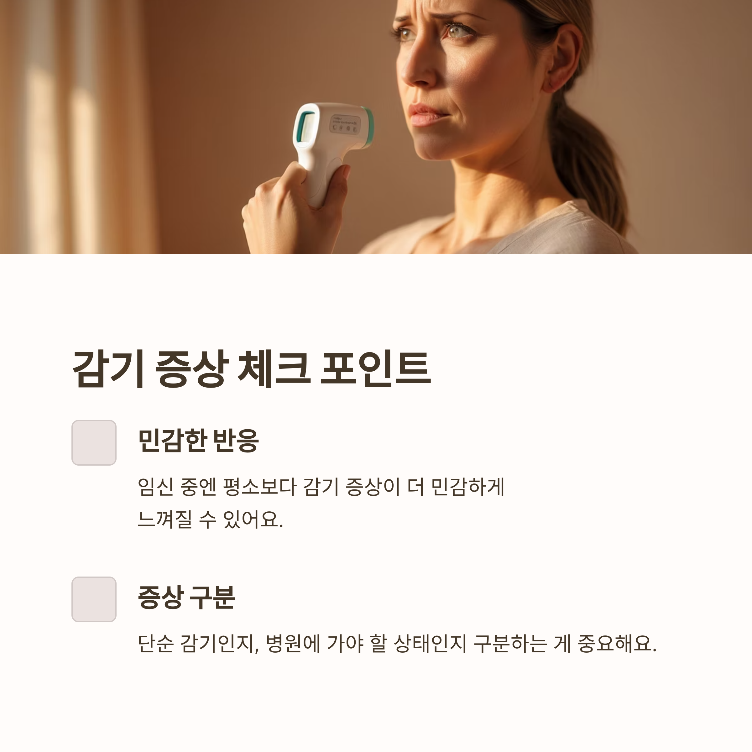 임신 중엔 평소보다 감기 증상이 더 민감하게 느껴질 수 있어요. 열이 조금만 올라가도 불안해지고, 평범한 콧물이나 목 통증도 태아에게 영향을 주진 않을까 걱정되죠. 이럴 땐 기본적인 증상을 체크하면서 '이게 단순한 감기인지, 병원에 가야 할 상태인지' 구분하는 게 중요해요.