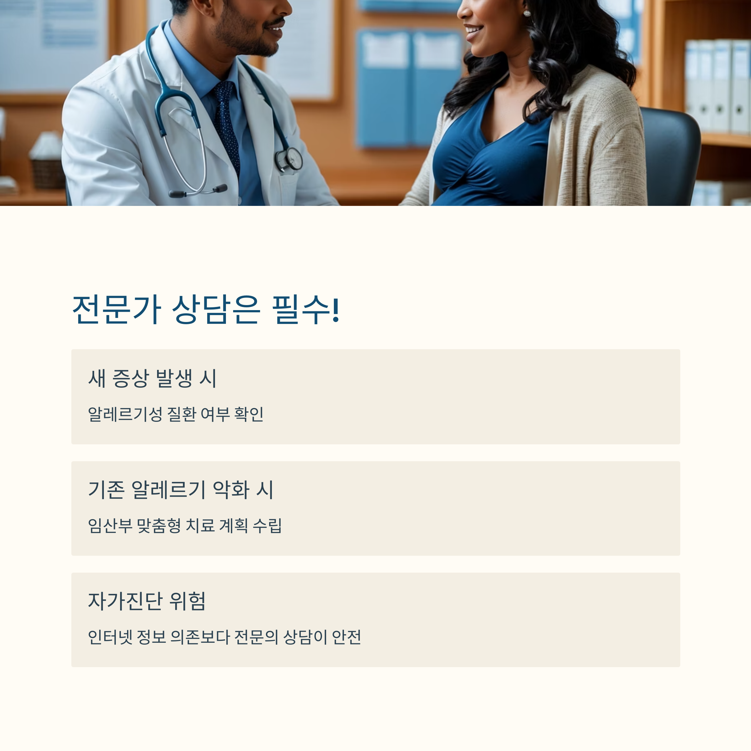 | 기존 알레르기가 악화될 때 | 임산부 맞춤형 치료 계획 수립 |